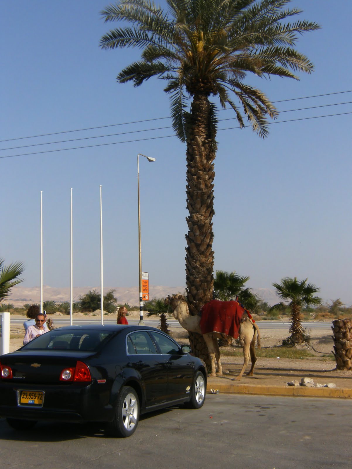 No dia seguinte, unimo-nos a uma turnê em uma van anunciada no hostel em direção ao Mar Morto e arredores. Interessei-me logo pelo fato de, novamente, incluir no seu roteiro lugares que visitei somente na primeira viagem a Israel. E logo que saímos de Jerusalém avistamos as montanhas desérticas típicas, com direito a andar de camelo na primeira parada, o que alguns experimentaram pela primeira vez. Tenho algumas fotos ao lado do animal, sobre ele nenhuma.