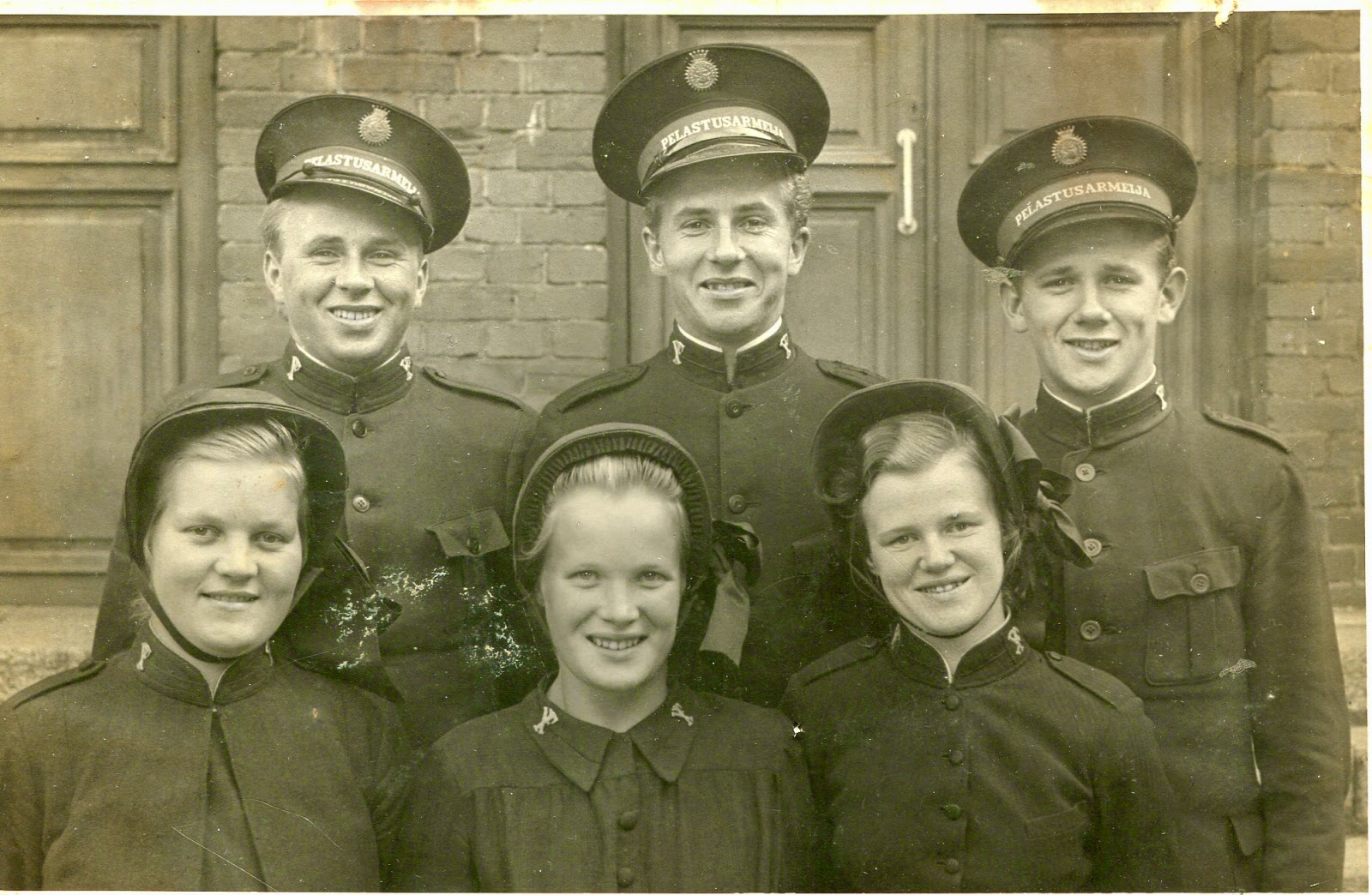 A seta mostra o fundador William Booth quando visitou a Finlândia, em 1909. Tendo esquecido os óculos, hoje é acervo do museu salvacionista.