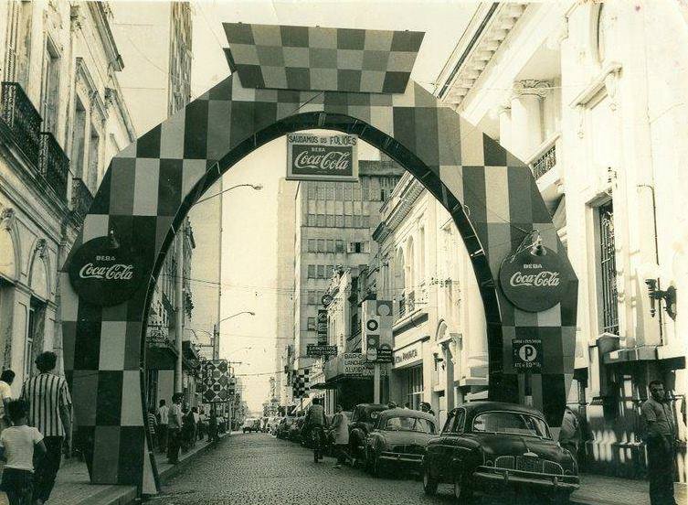 O Carnaval de rua em Pelotas teve seu tempo áureo nos anos 50, com desfiles de luxo e muita animação. O concurso das escolas de samba surgiu em 1953, registra a história da cidade. Adolescente, era uma festa muito esperada por mim que em um certo tempo gostava de pular atrás dos blocos que passavam na rua XV de Novembro (foto). Multidões lotavam esta rua, inclusive famílias que alugavam cadeiras na calçada para ver os desfiles.